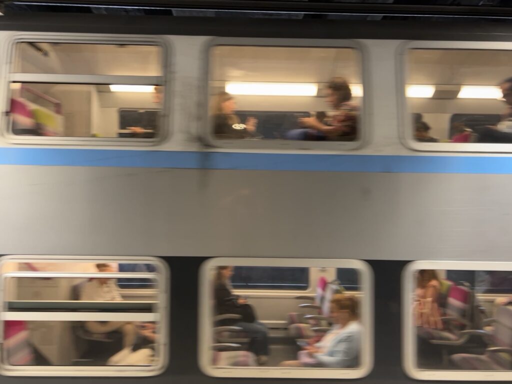 This subway car was really comfortable. I had never seen a double-decker subway before.