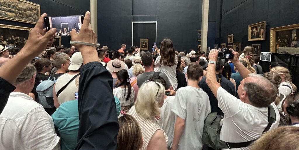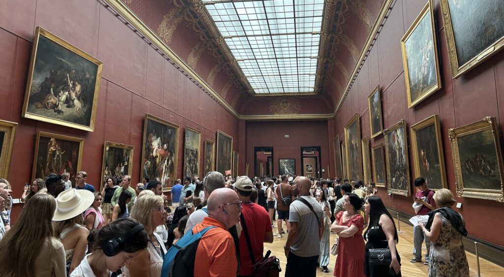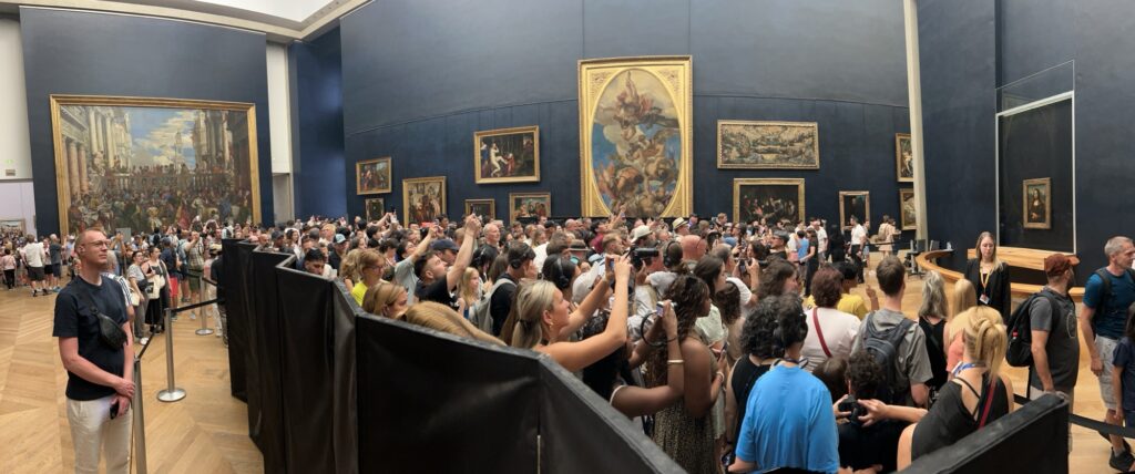 It feels like every wayfinding sign is directing you towards the Mona Lisa so we headed in that direction first. When you enter the room, all four walls contain art, but the crowd is mostly gathered at the far end where Mona Lisa hangs behind thick glass.