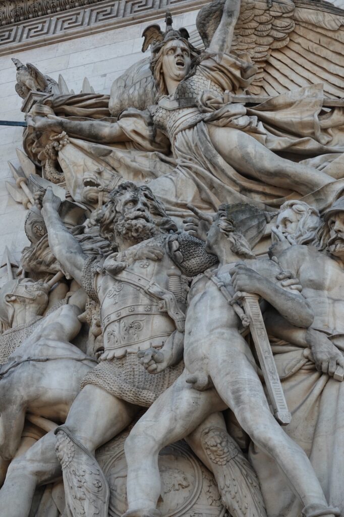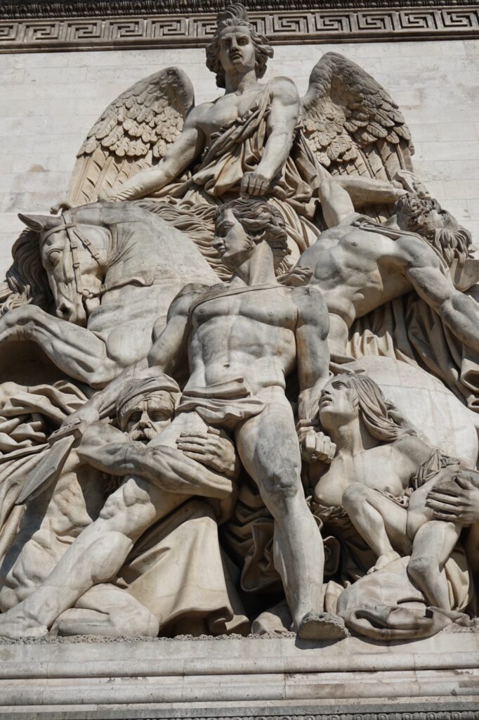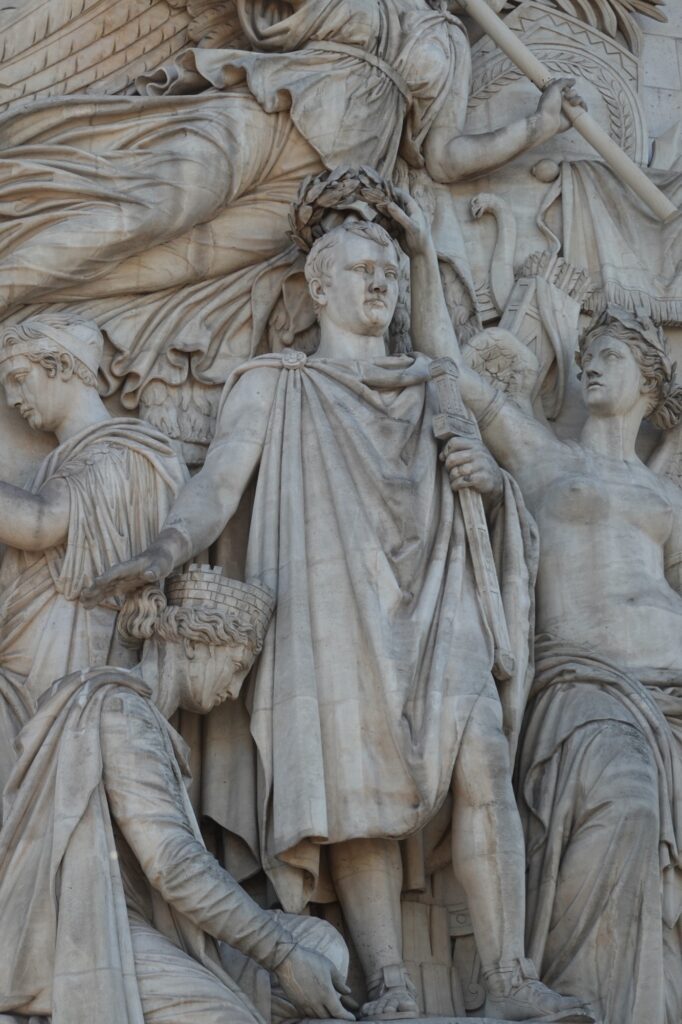 Impressive sculptures decorate the outside. Napoléon looks regal receiving a crown from the goddess of victory.